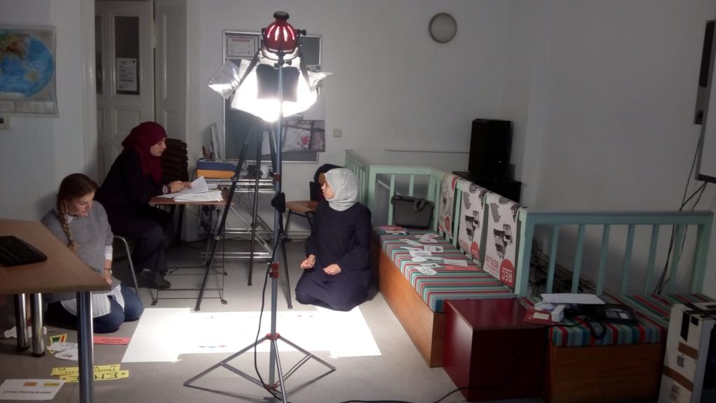 Schon Anfang 2018 starteten wir und sammelten Ideen in unserer Filmcrew. Wir erstellten erste Test-Filme, die Eltern gezeigt wurden. Die Rückmeldungen wurden dann genutzt, um die weiteren Filme aufzunehmen. Um die Filme technisch besser aufnehmen zu können, holten wir uns Unterstützung beim Medienkompetenzzentrum Tempelhof Schöneberg, dem Netti.